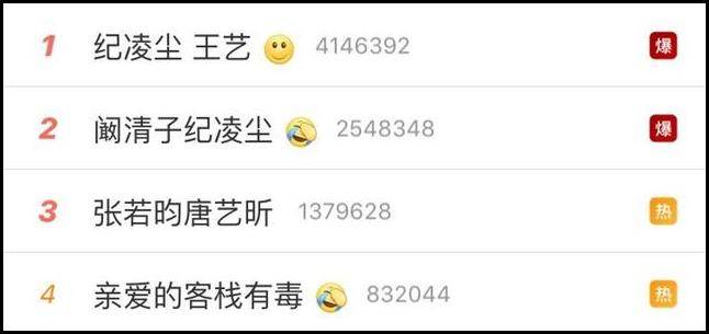 繼鄭爽和胡彥斌峯迴路轉的複合鬧劇之後,28日這一天又有一對娛樂圈的小情侶引爆了熱搜榜,沒錯就是闞清子和紀凌塵,一向愛的很甜的他倆居然也被曝出分手傳聞,連帶着張若昀唐藝昕還有《親愛的客棧》統統被頂上了熱搜↓