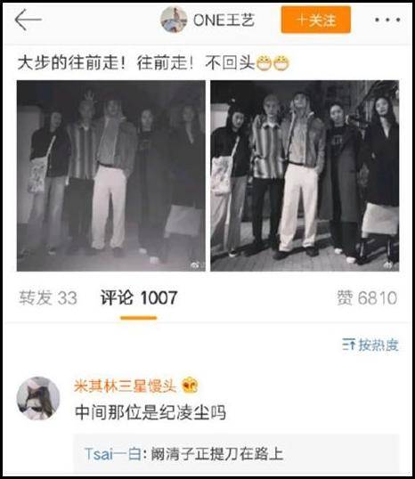 吃瓜羣眾們迅速去翻了王藝的微博,發現她和紀凌塵確有交集,兩人不但是同一家公司的模特兒,而且也在微博裏發過跟紀凌塵等一堆朋友的合影↓