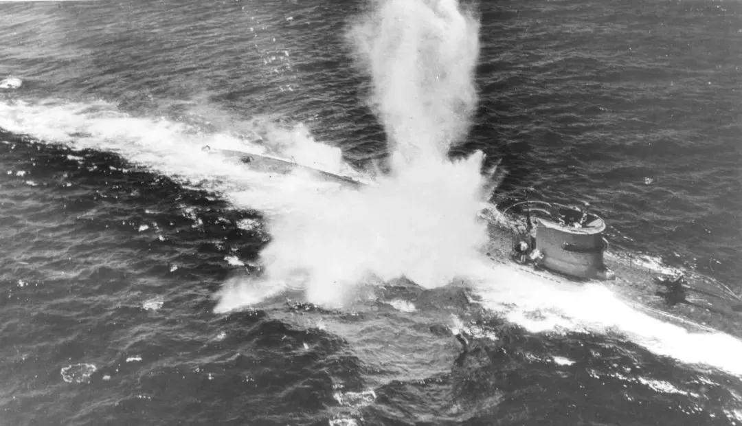 一艘在1944年前期被反潛部隊攻擊的VII型潛艇