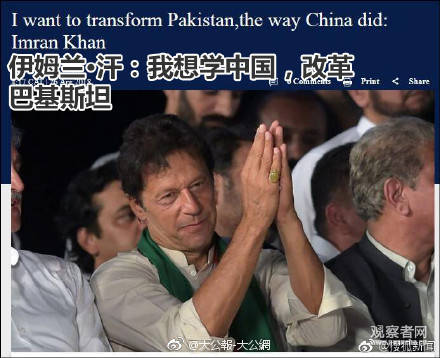 伊姆蘭•汗在正義運動黨獲勝後迅速表示,中巴經濟走廊給巴基斯坦帶來機遇,還讚揚中國政府在扶貧和反腐領域所取得的成就,並稱未來將加強同中國的交流、學習中國的成功經驗。