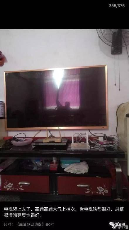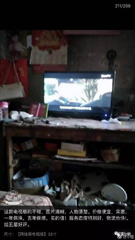 在這些破敗的房間背景中,赫然擺放着用户剛從拼多多上買下的電視,看上去確實令人動容。