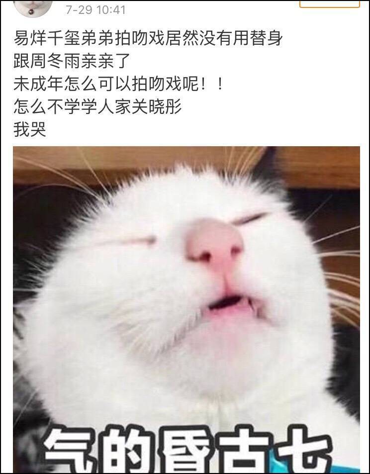 然而沒過幾天,就有一位自稱是羣演的網友在網絡上放出路透照,還宣稱易烊千璽和周冬雨拍吻戲了,“你們 小北哥哥 已經 親完了”一句話讓粉絲瞬間扎心。