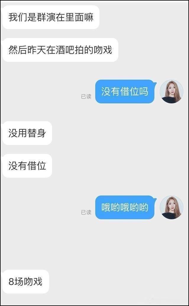 在粉絲詢問,該網友還補充説,易烊千璽並沒有用替身,親自上場。另外透露説,整部電影拍攝下來,吻戲有八場之多。