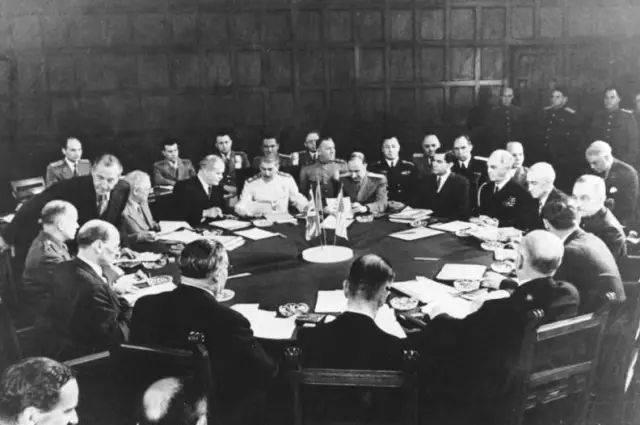 美蘇英法四國立場不一,經過反覆爭吵和協調,最終在波茨坦會議上達成妥協,《波茨坦會議公報》用了單獨一章來詳細規定了德國賠償問題,明確了“分區賠償”的原則和執行時限以及具體措施。所謂分區賠償,也就是各戰勝國在各自的佔領區內自行決定賠償方案,這也決定了德國不會作為一個整體來履行賠償義務。
