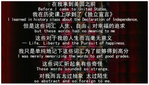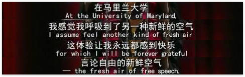 首先感謝楊小姐通過回憶她的學生生涯從側面給美國聽眾勾勒了一副14億中國人民的畫像,既然自由和幸福對我們的人生毫無意義,我想中國人民在美國人民心中的羣像應該是一堆沒有靈魂的行屍走肉罷了![4]
