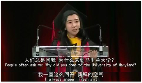 2017年5月,一位中國留學生楊舒平的演講視頻火爆網絡,事情是由她在美國馬里蘭大學2017年畢業典禮上的發言引起的。下面直接上圖。
