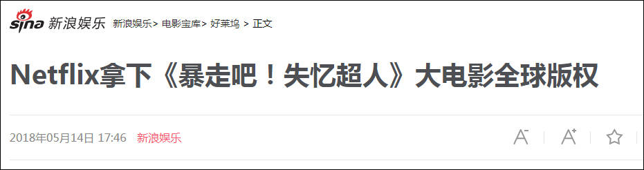 2018年5月,有媒體報道稱,Netflix在戛納電影節上以3000萬美元購入中國動畫片、《暴走漫畫》大電影《暴走吧!失憶超人》(Next Gen)的國際版權,包括中國以外所有地區線上和院線發行。