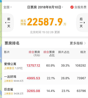 因此,這次《愛情公寓》的後期票房恐怕很難預料。但是今年中國電影市場比起前兩年更加火爆,之前同樣口碑稀爛的《後來的我們》也能圈到13億票房,所以《愛情公寓》假如破10億倒也不稀奇。
