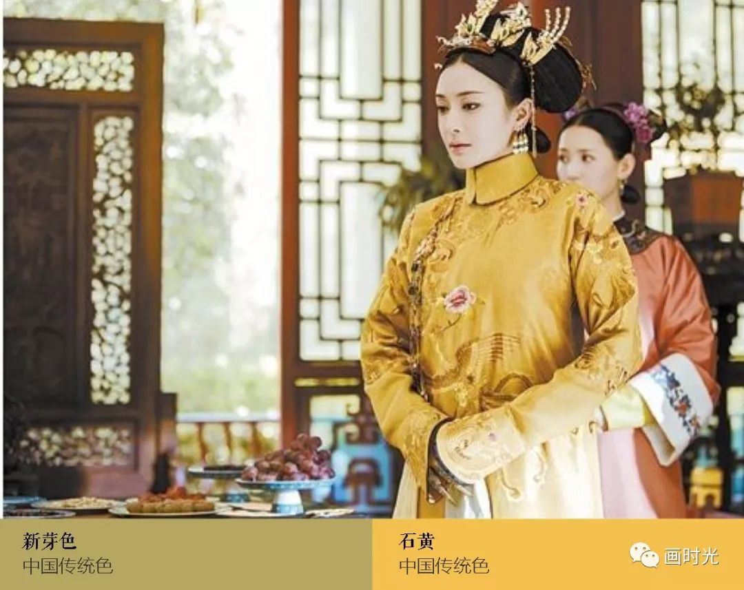 國畫經常用來表現春天的花卉,柔嫩新生的那種。所以女主剛入宮的時候,粉色搭配,就是這麼一隻粉萌小透明呀。