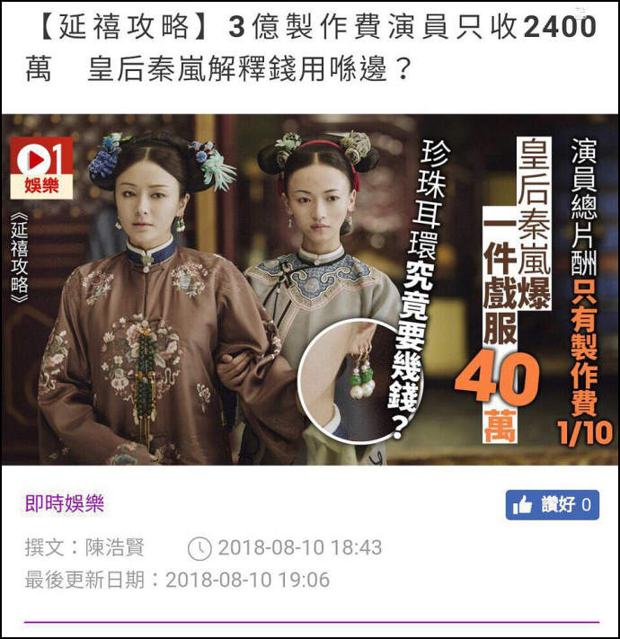 香港媒體關注《延禧攻略》演員片酬