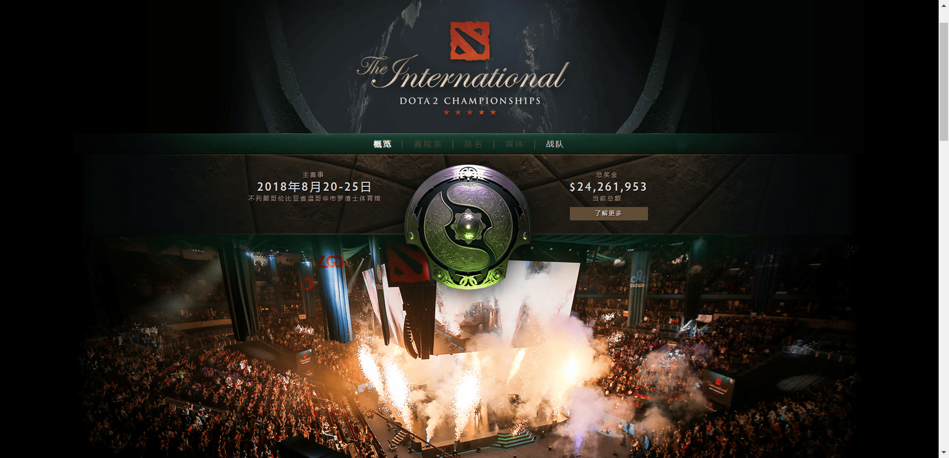 DOTA2國際邀請賽,The International DOTA2 Championships。簡稱Ti,創立於2011年,是一個全球性的電子競技賽事,每年一屆,由ValveCorporation(V社)主辦,獎盃為V社特製冠軍盾牌,每一屆冠軍隊伍及人員將記錄在遊戲泉水的冠軍盾中。 每年一次在美國西雅圖(除Ti1在德國科隆)舉行DOTA2最大規模和最高獎金額度的國際性高水準比賽。TI5的千萬美金總獎金讓dota2登上輿論高峯,而TI6的總獎金更是超過2000萬美元,影響超前,僅僅冠軍就能獨攬超過900萬美元的獎金。
