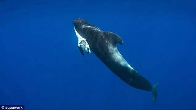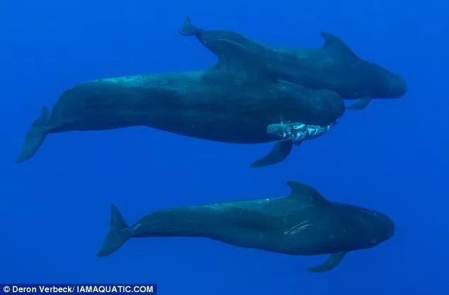 當時,他正在夏威夷的海里潛水,突然看見不遠處出現了三條短肢領航鯨,