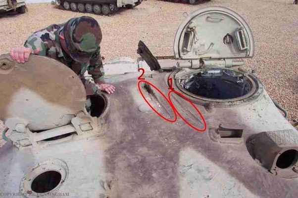 前面的裝甲板被擊穿帶出的大量碎屑在後面的裝甲板上留下了各種痕跡,可以想象,如果坦克被擊穿,內部會……