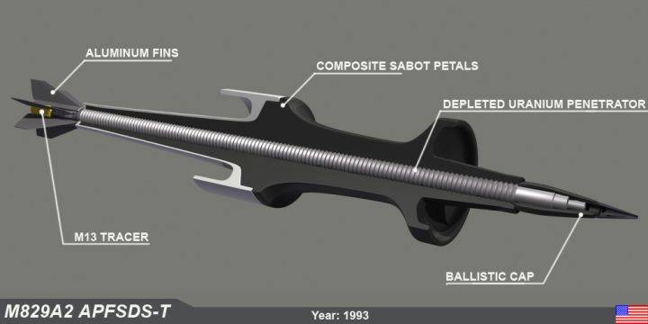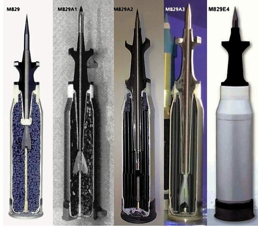 但從M829A3開始,風帽和穿甲體設計就沒有了,整個炮彈成了一整根的穿杆,和中國的“三期彈”設計類似