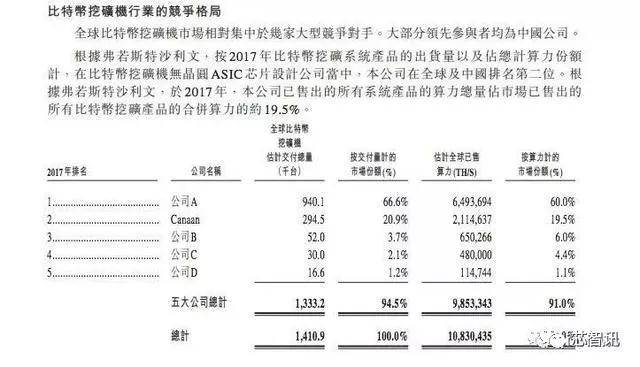 根據嘉楠耘智的招股書顯示,去年出貨前五的礦機廠商當中,第一名的比特大陸的螞蟻礦機去年交付了94.01萬台,按照每台機器採用189顆芯片(螞蟻S9礦機配備了189顆ASIC芯片)來計算,比特大陸去年一年就出貨了1.77億顆礦機芯片。而嘉楠耘智去年才交付了29.45萬台礦機,按照每台礦機104顆芯片(Avalon Miner 821礦機配備了104個16nm的ASIC芯片)來計算,去年一年也就出貨了3062.8萬顆芯片。顯然嘉楠耘智的這個芯片出貨量在台積電都排不上號。