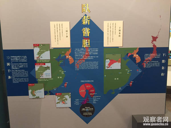 甲午戰爭展區最為可笑,也最令中國人憤怒的,莫過於日俄戰爭之後關於“三國干涉”部分的展板。由於三國干涉還遼,讓日本把甲午戰爭中吞下去的遼東還給了清政府。日本國內上下羣情激奮,簡直就是“憑本事搶來的東西,為啥要我還回去”,因此“深感屈辱”,要“卧薪嚐膽”,也因此為隨後的日俄戰爭埋下了伏筆。