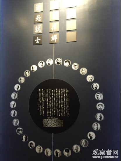 進入內部,首先就是“武士之魂”,其上還寫着“君子居必擇鄉,遊必就士”。仔細看其中所羅列的人物,包括但不限於:山本五十六、寺內壽一、畑俊六、杉山元等甲級戰犯或甲級戰犯嫌疑。所以遊就館取的“親近高潔之士”,就是這些甲級戰犯咯?