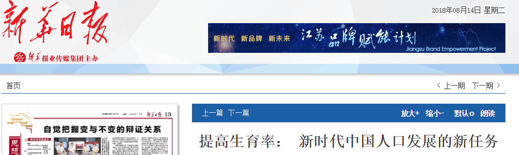 江蘇省委機關報建議:立刻全面放開生育 設立生育基金制度_風聞