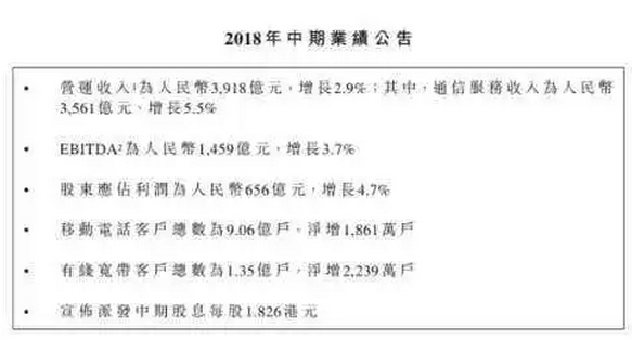 據中國移動8月8日發佈的2018年中期業績公告,上半年,中國移動實現營收3918億元人民幣,同比增長2.9%。