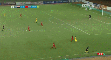 第25分鐘,敍利亞隊創造威脅,高準翼在禁區內解圍不遠,巴赫爾在禁區前沿打門,高準翼奮力補防將功補過: