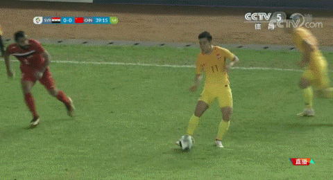 第22分鐘,中國隊後場長傳,張玉寧抬腳撩射偏出: