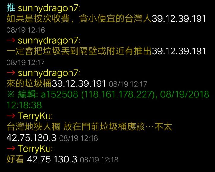 著名的PTT論壇上又開始討論起了台灣地區落後的“扔垃圾”方式。