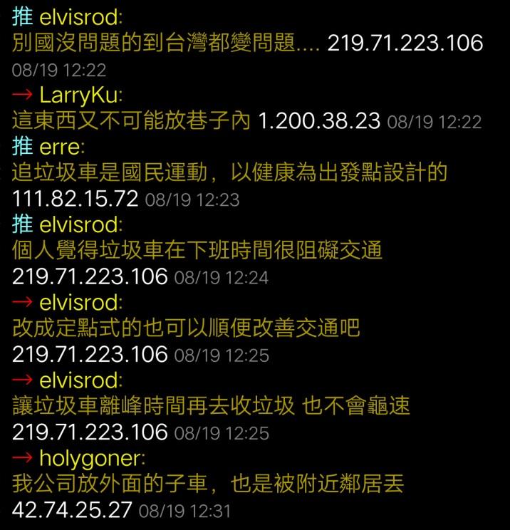 這則討論貼是在8月19日發佈的,背景是台北市推出了一個“24小時智慧垃圾桶”的項目,項目的具體內容是什麼,我們就不討論了,反正是要達到不用再追垃圾車跑的效果啦。結果呢,柯文哲的市府團隊因此被酸民嘲諷了,他們還搞了一個口號叫“垃圾不落地,柯走回頭路”。