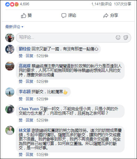 台灣叕失去一個“友邦” 蔡小姐社交媒體下面現在是個什麼場景?_風聞