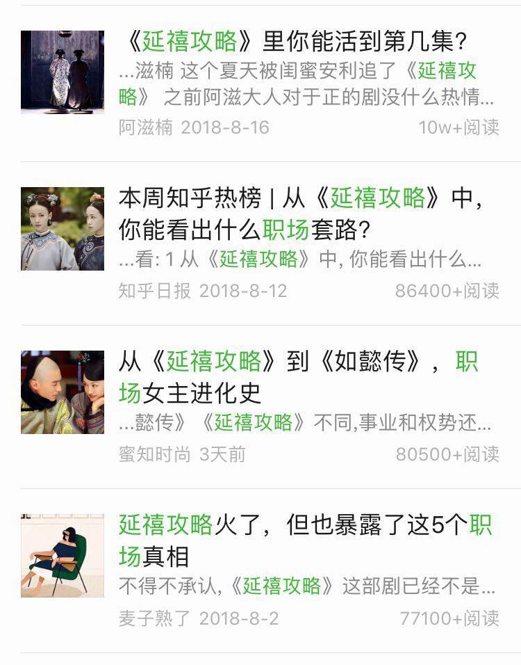 首先,的確有借《延禧攻略》分析職場的文章存在,閲讀量還不低。