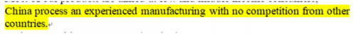 中國完整的產業鏈可以滿足製造的需求,中國強大的工業產能能夠滿足市場需求,中國熟練的技術工人可以提供高質量的產品,而且還比較便宜。