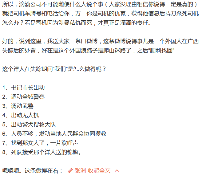 張洲的順序:女孩遇險-親友報警-警方跟滴滴扯皮-女孩死亡-兇手被抓