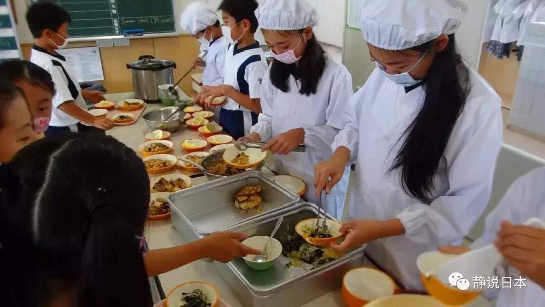 日本政府規定,小學生都必須在學校裏吃午餐。但是這個午餐不是去食堂裏吃,而是在教室裏吃。值日生必須自己去食堂裏把飯菜抬到教室裏,然後分給每一位同學。而每一位同學吃完午餐後,必須做兩件事:一件是自己把托盤和碗筷送到洗碗池裏自己清洗乾淨,包括把牛奶紙盒拆開沖洗乾淨,然後把碗筷各自歸類放好。第二件事,就是全體同學搬課桌,光着腳翹着屁股用毛巾手擦地板,把整個教室與走廊擦洗一遍。