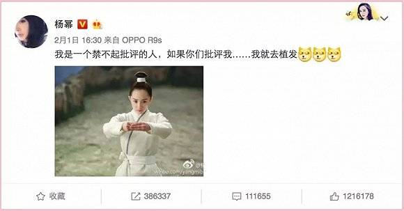 去年《三生三世》熱播,楊冪在司音一段劇情梳的大光明道童頭被網友刷屏吐槽,逼得大冪冪只好自嘲要去植髮。而出演《醉玲瓏》的韓雪,也自嘲“美髮就來離鏡天,你值得擁有”。