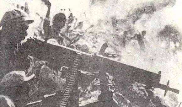 在11號陣地上,135團一個十八歲的小班長在坑道口的岩石縫中觀察到,烈火濃煙之中隱隱有一排排鋼盔在晃動,是敵人!小班長舉起衝鋒槍大聲喊道:“狗日的上來了,快出來幹哪!”