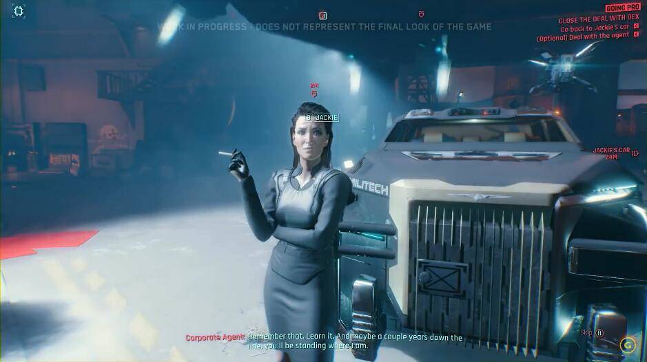 之後主角見到了朋友Jackie,他説有個叫Dex的大佬打算給他們一份工作,並且派了個豪車來接他們。