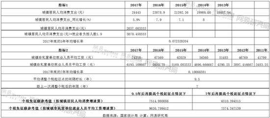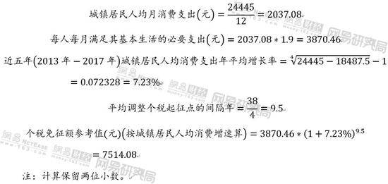 近五年來(2013年-2017年),城鎮居民人均消費支出年平均增長率為7.23%,按此計算,如果下次提高個税起徵點是在9.5年後,且這9.5年城鎮非私營單位就業人員平均工資的年平均增長率仍維持7.23%的增速,則9.5年後每人每月滿足其基本生活的必要支出為7514.08元,遠遠不是5000元的扣除額可以覆蓋的。