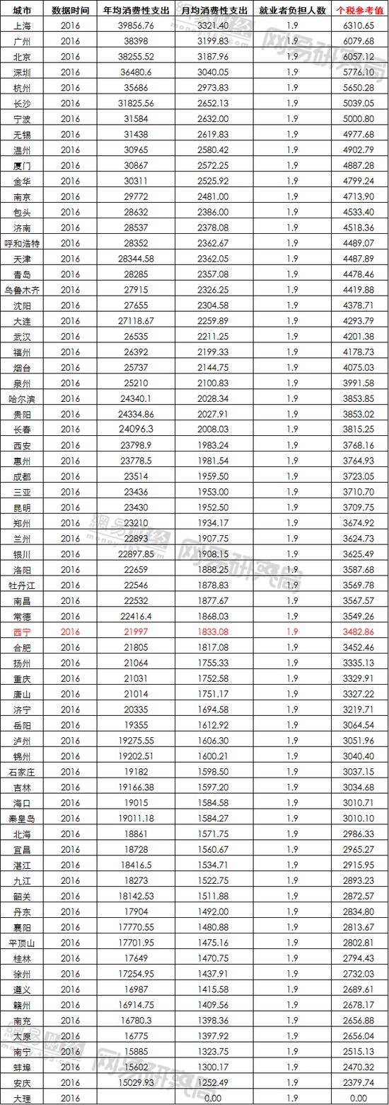 即使將個税起徵點提高到5000元,上海、廣州、北京、深圳、杭州、長沙、寧波這些一線城市的每月生活必要支出也都在5000元以上,這部分費用並不能被5000元的個税免徵額完全覆蓋。