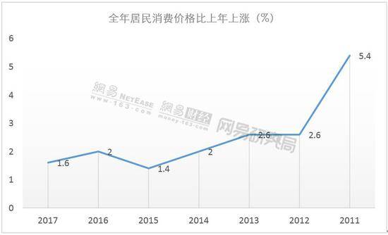 圖1全年居民消費價格比上年上漲折線圖(來源:中華人民共和國國民經濟和社會發展統計公報(2011-2017) 製圖:網易財經)