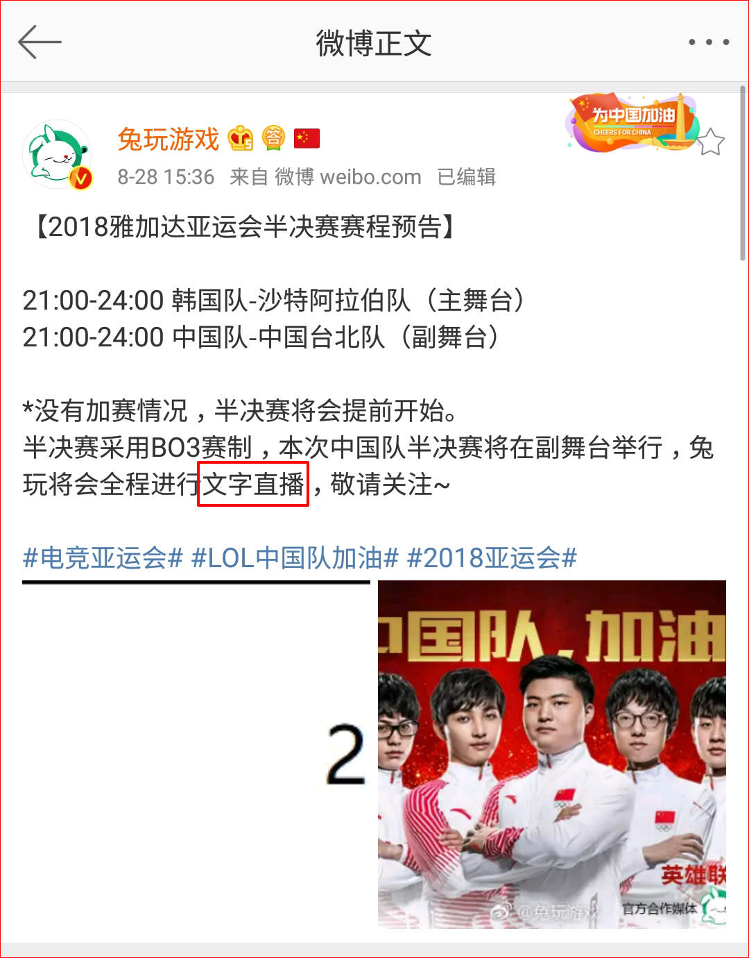 有不少網友表示,都8102年了,竟然還要通過文字直播這樣復古的方式收看比賽。當有電競媒體問大家多久沒有看文字直播時,有網友打趣的説“800年了吧。”