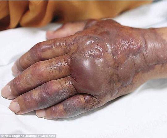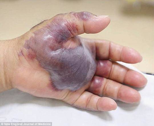 醫生們先將病人的水泡排幹,並清除感染組織,之後開了一些抗生素。但治療沒有見好轉,病人手上出現肉質腐爛的潰瘍,傷口反而變得更嚴重,整個手臂不得不被切斷。