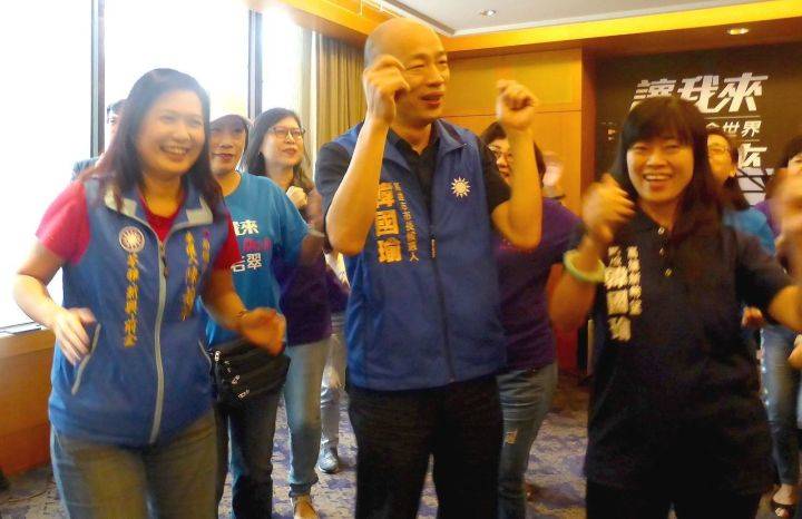 而高雄市長參選人的國民黨人韓國瑜,在脱鞋下水視察災情的照片獲得民眾好感的同時,也被發現其在水災之時也忙着去參加拉票造勢活動,跟着大家一起跳舞。