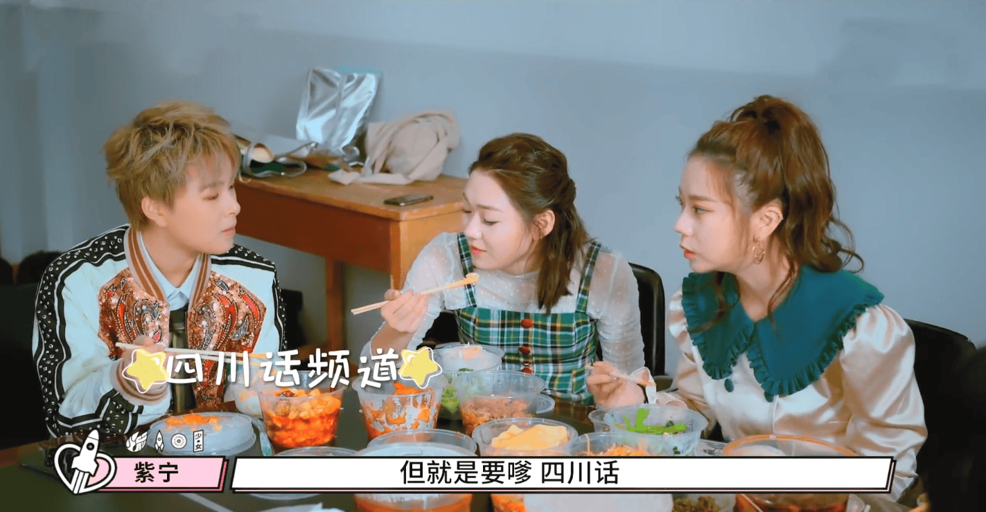 火箭少女女團中的張紫寧在和隊友進行四川話教學時,説了這麼一句話:“四川話好學,就是要嗲的”。