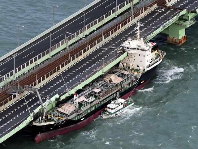 受颱風影響,一艘油輪撞向關西機場聯絡橋,使關西國際機場陷入孤島狀態,約3000人被圍困。目前,機場已開始用高速船向島外的轉移受困旅客。