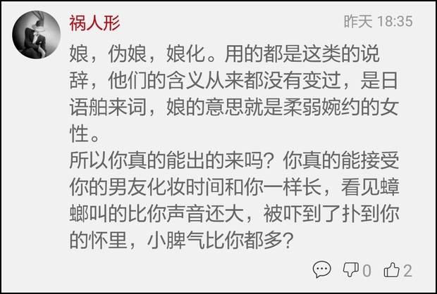 直到今天我看到了@夙興夜寐劉沫沫轉載的這篇《“娘炮”兩個字,殺死了多少温柔的男孩》,以及部分網友的回覆,我覺得我需要站出來了。