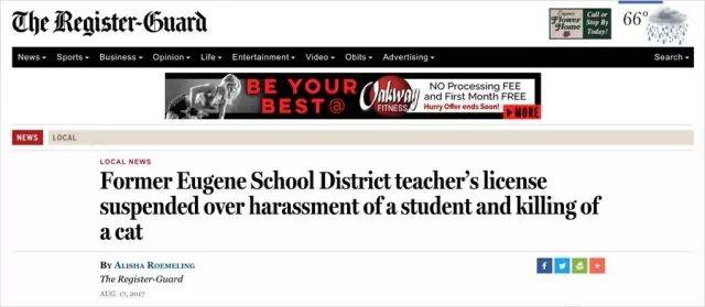2017年8月,美國一家地方報紙報道了俄勒岡州 Cal Young Middle School 一名叫做 Cody Loy 的教師,因為多年前曾騷擾一名15歲女生,而被吊銷了教師執照。但現在 Cody Loy 在中國執教,聘用他的中國學校估計還不知道他在美國被吊銷教師執照的事。