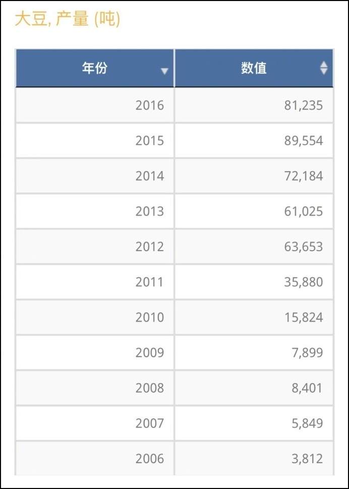 有網友説,該國大豆16年的年產量不過是8萬1千公噸。(五嶽散人 語)