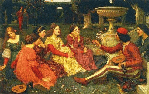 ▲《十日談》講述的是1348年意大利佛羅倫薩瘟疫流行,10名男女在鄉村別墅避難,他們終日遊玩歡宴,每人每天講一個故事,共住了10天,講了100個故事,這些故事都在批判天主教的黑暗和罪惡。