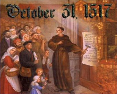 1517年萬聖節前夕,教皇又派人去德意志兜售“贖罪券”。當時德國深受教皇的盤剝,本來每年就要上交宗教税。神父馬丁•路德寫了《九十五條論綱》反駁,提出“信仰耶穌即可得救”的原則。原來的拉丁文沒幾個人認識,很多皇帝都不識字,所以《聖經》的解釋權歸天主教會。馬丁•路德將《聖經》翻譯成德文,廣泛傳播,後又被譯成各種文字。