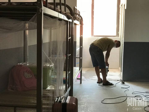 另外,由於宿舍出現漏水問題,部分宿舍仍有積水。有工人在已有學生入住的宿舍內進行排水系統的安裝等工作,以解決宿舍積水問題。