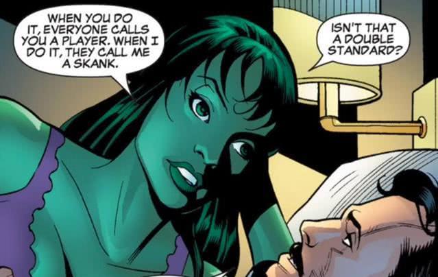 女浩克是神盾局的成員,在漫畫中和美隊發生的內戰結束之後,託尼順利當上了神盾局局長,在女浩克向其彙報任務,他對女浩克耍起來他男人的魅力,把女浩克搞上了牀,並且在事後女浩克問到他為什麼在外面亂搞的時候,他説因為他是“花花公子”。